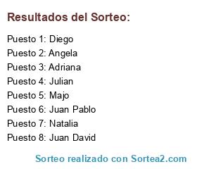 Lista de participantes: Majo, Julian, Adriana, Diego, Juan David, Juan Pablo, Angela, Natalia.