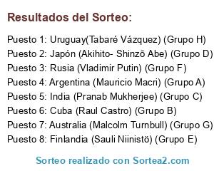 - Puesto 1: Uruguay(Tabaré Vázquez) (Grupo H)
