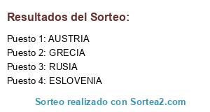 Lista de participantes: HOLANDA, ITALIA, PORTUGAL, ESPAÑA, ESLOVENIA, RUSIA, AUSTRIA, GRECIA.