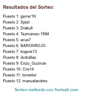 Lista de participantes: Maria Niendicker, mackiita, Teresita1, JHON ANTONNIO, Ruben figura, AlbertoSab12, jonalm86, locke4reyes8ford15, AlbertoOlmo1995, Jose Cruz C., Daniel Althabe, geronimodiez, Heinsenberg7, pabmartinezr, Jorge Valdano Vicente, Francisco Arredondo.