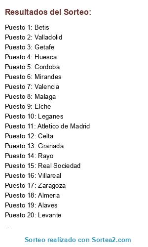 Resultados del sorteo:
