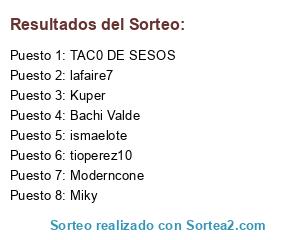 Lista de participantes: Bachi Valde, Moderncone, Kuper, TAC0 DE SESOS, lafaire7, ismaelote, Miky, tioperez10.