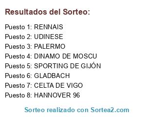 Lista de participantes: SPORTING DE GIJÓN, CELTA DE VIGO, DINAMO DE MOSCU, PALERMO, UDINESE, HANNOVER 96, RENNAIS, GLADBACH.
