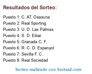 Lista de participantes: S. D. Eibar, U. D. Las Palmas, Real Sporting, C. AT. Osasuna, R. C. D. Espanyol, Real Sociedad, Sevilla F. C., Granada C. F..