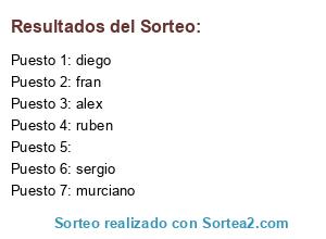 Lista de participantes: murciano, fran, alex, ruben, sergio, diego, .