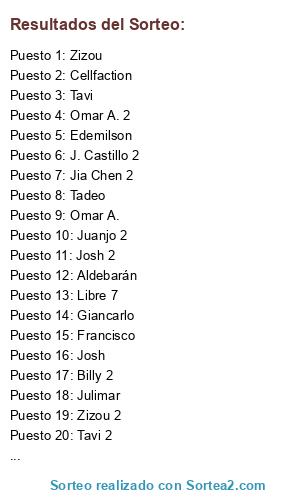 Resultados del sorteo: