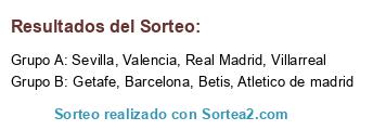 Lista de participantes: Barcelona, Real Madrid, Valencia, Betis, Getafe, Atletico de madrid, Sevilla, Villarreal.