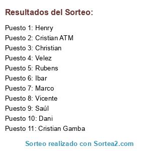 Lista de participantes: Saúl, Ibar, Cristian Gamba, Christian, Rubens, Cristian ATM, Vicente, Henry, Dani, Velez, Marco.