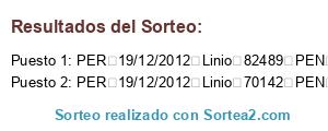 - Puesto 2: PER 19/12/2012 Linio 70142 PEN 1,101.80 1005