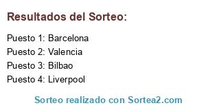 Lista de participantes: Liverpool, Valencia, Bilbao, Barcelona.