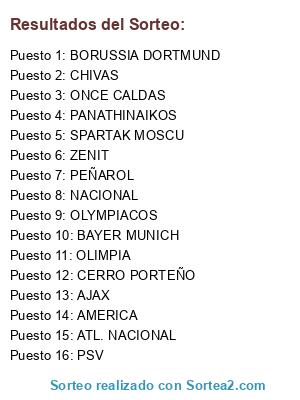 Lista de participantes: NACIONAL, PEÑAROL, ATL. NACIONAL, ONCE CALDAS, OLIMPIA, CERRO PORTEÑO, CHIVAS, AMERICA, BAYER MUNICH, BORUSSIA DORTMUND, AJAX, PSV, PANATHINAIKOS, OLYMPIACOS, SPARTAK MOSCU, ZENIT.