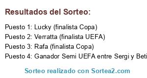 - Puesto 4: Ganador Semi UEFA entre Sergi y Betis