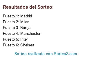 Lista de participantes: Barça, Chelsea, Madrid, Milan, Manchester, Inter.