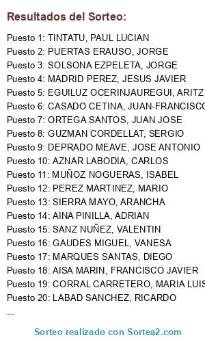 - Puesto 59: TRASOBARES RODRIGO, JOSE JUAN