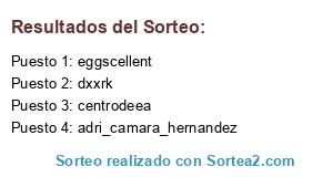 Lista de participantes: vicentejuan, alicantinatesteadora (2), eggscellent (6), dxxrk (2), _inmart, adri_camara_hernandez, cocinitaconmaria, cplfisio (2), rocasadecoraciones, sedalene_hair, centrodeea, alba.natural, edonatelo, manavarro_13, rafaalmeja, rpm_rafa25, ssaramonac, alejandrorn26.