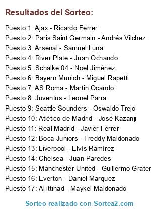 Resultados del sorteo: