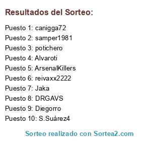 Lista de participantes: DRGAVS, samper1981, ArsenalKillers, potichero, reivaxx2222, S.Suárez4, canigga72, Diegorro, Jaka, Alvaroti, .