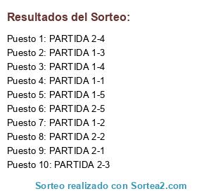 Lista de participantes: PARTIDA 1-1, PARTIDA 1-2, PARTIDA 1-3, PARTIDA 1-4, PARTIDA 1-5, PARTIDA 2-1, PARTIDA 2-2, PARTIDA 2-3, PARTIDA 2-4, PARTIDA 2-5.