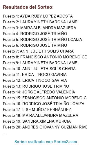 Resultados del sorteo: