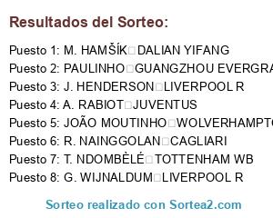- Puesto 1: M. HAMŠÍK DALIAN YIFANG