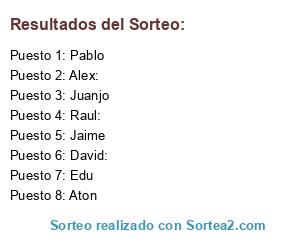 Lista de participantes: Juanjo, Edu, Jaime, Raul:, Alex:, Pablo, David:, Aton.