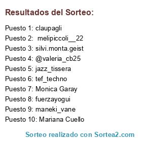 Lista de participantes: oxigenofitnesss, pao.rol, _aylenm, silvi.monta.geist, maneki_vane, adriana.marino.98, carlamansilla89, silviadavinci, missclosetevc, giselcepeda1, tef_techno, fuerzayogui, silvana.vargas.545, @valeria_cb25, natu_gianni, maaicasal, alunadas__, evagabrielabardon, melipiccoli__22 , jazz_tissera , claupagli, Meli Piccoli, Monica Cipullo, Paula Zuloaga, Ci Nt, Eugenia Ferreyra, Mariel Alfano, Mariana Cuello, Maria Lujan Salas, Mark Noah, Mónica Ontivero, Erika Sahana Mahana, Monica Garay, Camila Boos .