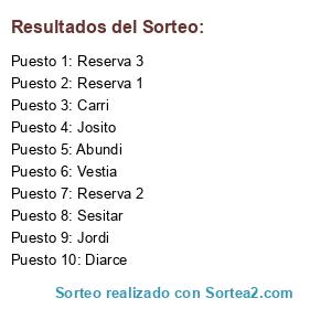 Lista de participantes: Sesitar, Abundi, Diarce, Carri, Jordi, Josito, Vestia, Reserva 1, Reserva 2, Reserva 3.