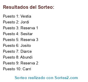 Lista de participantes: Sesitar, Abundi, Diarce, Carri, Jordi, Josito, Vestia, Reserva 1, Reserva 2, Reserva 3.
