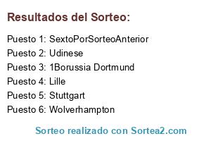 Lista de participantes: Udinese, Stuttgart, Wolverhampton, 1Borussia Dortmund, Lille, SextoPorSorteoAnterior.