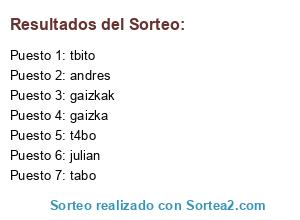 Lista de participantes: ander , gaizka, t4bo, gaizkak, andres, tabo, tbito, gaizkon, julian, .