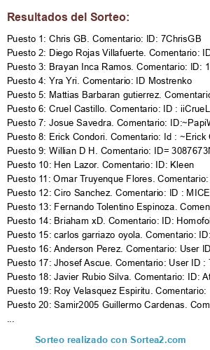 - Ganador 7: Josue Savedra. Comentario: ID:~PapiWirlex~