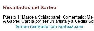 - Ganador: Marcela Schiapparelli Comentario: Me encantan! Yo les regalaría una a Mili Garcia porque siempre le gustaron las tazas personalizadas y se le han roto. A Gabriel García por ser un artista y a Cecilia Schiapparelli porque me la regalaría a mí 😉😉
