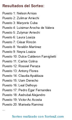 Lista de participantes: Ana Gonzalez, Antony Flores (2 participaciones), Asdrubal Alejandro, Blanca Castillo (2 participaciones), Carlos Colina, Carolina Acosta, César Rincón, Claudia Giambalvo, Claudia Apablaza, Dulce Calderon Famiglietti, Erika L, Geralka De La Rosa, Gerardo Verhelst Herdz, Las Fofuchas De Lorena la Torre, Laura Loaiza (19 participaciones), Leal Delhoyo, Leydy Ostios, Ligia Cristina Gonzalez, Luisimar Arocha de Valera, Manuela Cabeza, Marisela Ramirez, Maryoris Cuba, Nelson Arnias, Neyra Loaiza (2 participaciones), Oliangel Suárez, Pedro Egar Fernandes, Raiza De Colina, Rossiel Peraza, Uam Derecho, Victor Ac Acosta, Yenny Reposteria Creativa, Yeraldin Martinez, Zulimar Arriechi (9 participaciones), Zulymar Arriechi.