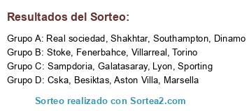 Lista de participantes: Galatasaray, Southampton, Dinamo, Cska, Shakhtar, Lyon, Sampdoria, Fenerbahce, Real sociedad, Stoke, Aston Villa, Besiktas, Villarreal, Torino, Marsella, Sporting.