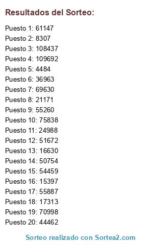 Resultados del sorteo: