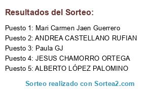 Lista de participantes: CARLOS MARTÍNEZ RIVILLA, PACO SERRANO, INMACULADA ESPINOSA FUENTES, JUANY MONTORO, FRANCISCO PEDRAJAS, TINA CATENA COBOS, RAQUEL HUETE ORDOÑEZ, VIRGINIA MELLADO, ANA ALARCO RUBIO, NURIA ESCABIAS, ANA GIJÓN MILLÁN, LOURDES ACEITUNO VERA, MARIA JOSÉ CAÑADA GARCÍA, MIGUEL PA PE, ALBERTO LÓPEZ PALOMINO, MARTA LARA FERNÁNDEZ, CARLOS DELÁ, BEATRIZ DE LA TORRE, VANESSA ROMERO ROMERO, SANDRA MOLINERO MONTERO, VERONICA ACEITUNO VERA, CRISTINA PALOMINO RAMIREZ, MARIA JOSÉ SANCHEZ PEREIRA, MARIA LOURDES ILLANA MARTINEZ, MATILDE PEREZ MARTÍNEZ, INMA AGUILAR BORREGO, ANA VALENZUELA CRUZ, MARTAKY PADILLA PÉREZ, LORENA MARTÍNEZ, JESSICA DE DIOS SERRANO, CRISTINA POVEDA PULIDO, AMADOR MOLINA GONZALEZ, MARIA CHAMORRO ORTEGA, JUAN DE LA TORRE, ISABEL JIMENEZ, JESUS CHAMORRO ORTEGA, MARIA DEL MAR GONZALEZ FUENTES, MARIA DOLORES MOLINA BARRANCO, RAFAELA FUENTES GODINO, ANA POVEDA PULIDO, LOLA MH, GEMA CHAMORRO ORTEGA, RAQUEL FUENTES SERRANO, CARMEN MARÍA SERRANO DIAZ, PILAR CARAZO GUTIERREZ, JOSY VIEDMA, CARMEN MARQUEZ, ANA MARIA SUTIL SANCHEZ, FATIMA SIERRA, RAQUEL CABALLERO, YOLANDA DIAZ, NATALY GTTIERR, ANA MARÍA HIDALGO, PEPA MARQUEZ, LOLI VALLEJOS, ROSA MARÍA ZAMORA SERRANO, LAURA CRUZ, FRANCISCO SABALETE MUÑOZ, TANIA MARTINEZ, ANDREA CASTELLANO RUFIAN, MARIA JOSE CASTRO MOYA, LAURA TURURÚ, FRAN RINCÓN, ANA JIMENEZ SEVILLA, ENCARNA SEVILLA CUEVAS, JULIA FUENTES GODINO, NIEVES CM, FÁTIMA SIERRA, LUNA LATORRE SÁNCHEZ, JUAN SORIA DIAZ, ALEJO MUDARRA, NATIVIDUBI MORSE, Ana Jimenez Sevilla, Cristina Poveda Pulido, Mari Carmen Jaen Guerrero, Ana Gijón Millán, Maria SaMo, Gema Fuentes, Juan Antonio Ceacero, Paula GJ, Bea de la Torre, Jose Carlos Ramirez Cano, Nuria Gutierrez, Alberto Fernandez Gonzalez.