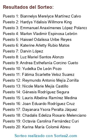 - Puesto 15: Lauris Albelina Ramírez Medina