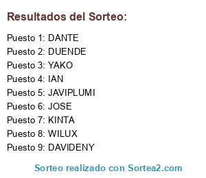 Lista de participantes: DAVIDENY, IAN, YAKO, DUENDE, WILUX, DANTE, JOSE, JAVIPLUMI, KINTA.