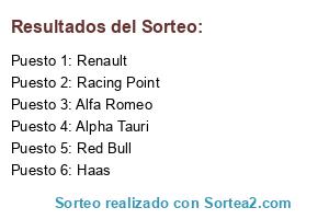 Lista de participantes: Mercedes, Ferrari, Red Bull, Alpha Tauri, Mclaren, Renault, Alfa Romeo, Haas, Williams, Racing Point.