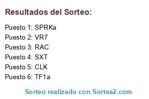 Lista de participantes: CLK, SPRKa, VR7, RAC, TF1a, SXT.