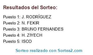 Lista de participantes: J. RODRÍGUEZ, ISCO, M. ÖZIL, BRUNO FERNANDES, H. ZIYECH, N. FEKIR.
