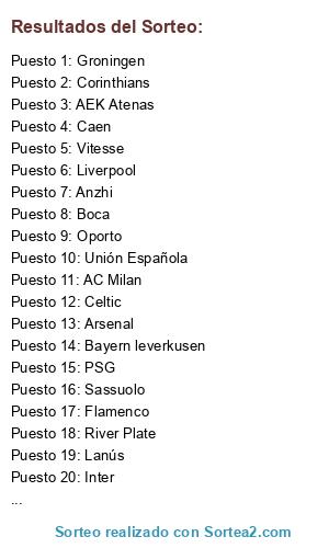 Resultados del sorteo: