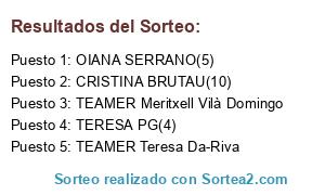 Lista de participantes: TEAMER Amelia Oreja Ramírez, TEAMER Nati Aler, TEAMER Mª Pilar Muñoz Casanellas, TEAMER Esther Sagasti Verano, TEAMER Rebeca muñoz gomez, TEAMER Lluïsa Vives, TEAMER Javier cherradi molina, TEAMER Gioconda ordosgoitti Fermin, TEAMER Sonia Esteban Domínguez, TEAMER Amalia MORANO, TEAMER rosalia lahoz ros, TEAMER Reyes Ruiz Barberá, TEAMER Inma García Trujillo, TEAMER Anna Torné Quer, TEAMER Silvia Valencia González, TEAMER Vanesa Del Rio, TEAMER NURIA SUÁREZ GUARDIA, TEAMER Rosa Blanco Guerrero, TEAMER Merce Coll Serrahima, TEAMER Maria jesus muñoz castillero, TEAMER Lídia Jiménez Palomino, TEAMER Gema andres parada, TEAMER Chusi riveira castelo (Okupa RC), TEAMER Teresa PG, TEAMER Cristina Brutau Bras, TEAMER RAQUEL MARTÍNEZ ARIAS, TEAMER Meritxell Vilà Domingo, TEAMER BEATRIZ LA PARRA SUAREZ, TEAMER Gemma Garcia, TEAMER Manoli Abal Esnaola, TEAMER Raquel Franco Rodríguez, TEAMER Teresa Da-Riva, TEAMER Veronica Diaz Oreja, TEAMER Samantha brandariz paredes, TEAMER Curra González, TEAMER Raquel López Castro, TEAMER Isa Carricondo, TEAMER Manuel Enciso Fernández, TEAMER Arantxa Leoz Sastre, TEAMER Víctor Aloras Verstoep, TEAMER Gemma Sanz Moreno, TEAMER Beatriz Valencia Gonzalez, TEAMER Marisa Bermejo Manso, TEAMER RUT VALDIVIA CANO, TEAMER Fran Bernal, TEAMER Yolanda Panigua, TEAMER Oro Hurtado, TEAMER Marta Casielles, TEAMER Yone Martiarena, TEAMER Pepe Doval, CHUSI RIVEIRA(10), FRAN BERNAL(46), MANEL ENCISO(10), TERESA PG(4), DEBORA DE LA PEÑA(70), ELISA MORENO(10), CRISTINA BRUTAU(10), RUT VALDIVIA(50), N. MING(35), NATI ALER(20), MACARENA AZUAGA(5), SUSANA QUINTANA(15), ALEJANDRO MUÑOZ(5), TERE MUÑOZ(5), ELSA BAHILLO(20), VANE DEL RIO(3), MARISA BERMEJO(15), PILAR MUÑOZ(15), GALGO LOCO(9), MARI LUZ (15), MARIANNE CORTES(30), LLUISA VIVES(50), GEMA SANZ MORENO(2), SUSANA ALDEA(20), MARIA JESUS MUÑOZ(20), E. PUIGDEMONT(8), NURIA SUAREZ(5), SARA SEPULVEDA(5), INES GALAN(10), ALMUDENA TOBIO(5), JOANA CHULADAS(5), VIVIANA LEONOR(2), NIKA VERONIKA(15), Kuna(5), UHURA(5), RATON(5), ANA ML(2), CALIM y BARSI(9), MAR TOMAS(15), KRIS KIXU(14), MARGA GALIANA(15), OIANA SERRANO(5), M. GALANTE(50), TERESA FRANCO(10), PATRICIA PLAZA(10), ADELINA MAIRATA(10), YONE MARTIARENA(15), JAVIER CHERRADI(50), MARTA MORENO(5), ROSA ID PIRES(10), MIREIA PRATS(10), FEIMO NOORE(5).