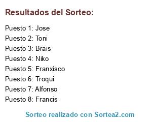 Lista de participantes: Francis, Brais, Niko, Alfonso, Toni, Franxisco, Jose, Troqui.