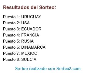 Lista de participantes: FRANCIA, DINAMARCA, SUECIA, MEXICO, ECUADOR, URUGUAY, USA, RUSIA.