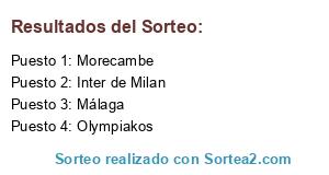 Lista de participantes: Inter de Milan, Olympiakos, Morecambe, Málaga.