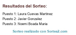Lista de participantes: Yolanda Jimenez Rodriguez, Iria Isis Gonzalez Iglesias, Karol ocha, Mireia Martinez Fernandez, Jennyfer Fernandez, Sara Pajuelo Gomez, Celia Cla Bernal, Ariana Coman, Jose Ramon Gonzalez Ventura, Andrea Garcia Lopez, Lidia Garcia, Marbel Avellà Cervera, Rocio Cervantes Leyva, Marimar Alonso Robles, Mercedes Lopez-Galvez, Eugenio Soriano Patiño, Julia Vivas Cortes, Maria Antonia Toribio Martinez, Aurica Niculina Radu, Jeanette Alabarce Hernandez, Adrià Almirall Puig, Ravindra Kadam, Sonia Garci, Yolanda Porras, Fatima Azyane Badii, Andrea Serrano, Angelines Vázquez Méndez, Darling Stypayhorlikson Escoto, Milagros Reguejo, Rosa Maria Garcia Falcon, Sandra Castellano López, Emilia Koch, Carina Baptista, Gore Peraza, Mariluz Jiménez Astorga, Hayat Driss, Maria Piedad Gomez Diaz, Krasimira Toteva, Novsat Confort, Isabel Fernandez Morales, M Pilar Cuenca Marquez, Ana Isabel Blanchett Christmas Williams, Isabel Vico Romero, D-soara Rasfatata, Jimena Russi, Cipriano Mendez, Africa Garcia, Sergio Garcia Ruiz, Moussa Charri, Gregori Electrodomesticos, Consuelo Calderòn Moreno, Amaya Notivoli, Cristina Ramis Flores, Joaan Gomezz, Chabeli Gonzalez, Nenika Core, Mayka Hernandez, Puertollano Borja, Roberto Pinilla Santibañez, Edgar Cano Santiago, Marta Gauchola, Nany Gonseski, Cristina Tisa, Rita Bonillo Hortal, Rosita Forza Depor, María José Hernández Gutierréz, Valeria Torres Orellana, Cristina Catala Bonmati, Noemi Boada Maria, Ins Amors, Mari Angeles Sanchez Blandino, Alex Martinez, Carmen Lopez Perez, Pili Romero Verdugo, Vaduva Kikisor, Iris Sanchez Sirera, Lucía Fernández Fernández, Maria Brás, Esti Dona, Isa Perez, Laura Falcon, Toñy Arcos Andreu, Flori Turcanu, Isa Calleja del Arco, Grupo Incendios Jodar, Alba Rodriguez Vasallo, Isabel Garcia Garcia, Lamorena Aikever Reshulona, Iratxe Tercilla, Beatriz Lombardia Fernandez, Marta Parraga Paniagua, Paula Navarro, Fransdeven Sisco Ade Ant, Maria Amor Casal Garcia, Miriam Cortés Martorell, Enriqueta Redondo Alonso, Tamaraa Lopez Martin, Rayza Valdivia, Paqui Ledesma, Sonia Cortés, Rosaura Alvarez Leon, Amy Blanco, Carmen Simon Sampietro, Elena Pastor Sola, Ana Belen Iglesias Merino, Marise Otero, Eva María Enríquez, M Pilar Gil, Patricia Garcia Alamo, Lucia Xaica, Susana Macias Santos, Isabela Alexandru, Sidonia Dorela, Maria Josefa Martin Mateos, Abundio Fernández-gracia, Silvana Gabotto Verti, Teresa Pastor Castelló, Raquel Jimenez Carrasco, Sabela Patiño Ullán, Patricia Barril Rodríguez, Maria Sierra, Mlleyn Xikitha Remache, Francisca Yuste Garcia, Leonor Martinez Guerrero, Tonni Ronaldo, Kelly Mendez Pasarin, Angela Muñoz, Lyubka Mladenova Grigorova, Jennifer Valdespino Callejas, Karla Valverde Arana, Irene Espligares Garcia, Mely Torres, Fernelly Arias Londoño, Ruben Alzamendi, Merce Montoya Ortiz, Raquel Df, Eagle Bar Benidorm, Ella Rasila, Angeles Vazquez, Emilia Sorina Pascari, Juan Toledano Lopez, Fati Souhaib, Antonio Nuzzo, Alonso Moyano Guerra, Maria Mercedes Quesada Pastor, Angelica Quiroz, Judith Fg, Marian Ioan, CasaBures Turismo Rural, Macarena Gallart Mantegazza, Isabel Martin Perez, Noelia Meca Hernandez, Jéssica Santana Suárez, Kapitana Corsaria Pirates, Maria Jose Martin Benito, Rosamaria Ribera Vall, Beatriz Baraja Pasalodos, Cris Sanz, Any Navarro Gopar, Wendy Susan Aquino Pinares, Silvia Zamora Vilar, Cristina Moratalla Perez, Veronica Narro Carratala, Maria Rosa Amorós, Pilar Mmota Polanco, Cecilia Vega Benito, Nerea Viejo, Mariajose Cordero Alonso, Nenitah Hlal, Anna Ying Vitaller Cobos, Laura Los Broches DE Laura, Leticia Bello, Angelina Santacana Casals, Ana Amor, Julia Jimenez Arroyo, Maria Jose Robles Ruiz, Beatriz Gajete Hernandez, Sonia Maria Silva Pesqueira Teixeira, Soledad Gonzalez Romero, Niño Juncal, Tania Romero, Yaiza Oliva Afonso, Mariona Parramon, Mami Duna Carolina, Margarita Asenjo Carrancio, Raquel Lopez Benitez, Encarni Pinteño Abad, Noelia Gomez Cerro, Maria-Anna Colomer Bover, Zully Perez, Benedicta Manga Juanes, Beatriz Fernandez Aracil, Francisca Cano Uco, Lorena Torrecilla Solís, Marina Alejandra Blanco, Ana Maria Márquez Mora, Isabel Ros Pacheco, Dolores Alvarez Ramos, Simon Artero Cuenca, Angeles Millan Otero, Hânân Øujdîâ, Edurne Ceciaga Okina, Trevejo Apartamentos Rurales, Angelica Salas Silva, Montserrat Cambón Busto, Barbara Llana, Jessica Perez Rodriguez, Rosa Maria Gosende Pazos, Juani Gonzalez, Laura Rios, Cristina Berrio Blas, Neli Aguado Gutierrez, Eva Medina, Tatiana Perez Garcia, Núria Martí Raventós, Carmen MG, Nuri Nurita, Ana Roman, Valle Rincón Regalón, Patricia Moreno Jimenez, Maria Domenech, Macarena Soria, Alba Vidal Almela, Neymar Barcelona, Elisabeth Calderon, Ana Febrer Giner, Isabel Baeza, Mirta Martinez Garcia, Elena Villalba Cabrera, Cristina Canudas Lopez, Soniketa Soniketa, Maria Jose Espinosa, Lorena Silvan, Sonia Garcia-parrado Checa, Theodore Baker, Antonio Casero Manzano, Vïcen Vandernaski, Johanna Parra Arias, Yolanda Dominguez Pereira, Abigail Cordero Gaviño, Diario De Una Madre, Estela Cortes Rafael, Francisco Muñoz Torres, Abdelkader Gharras, Lali Gonzalez Castro, Roxana Aranibar Leon, Liz Chavarria, Minerva Fernandez Diaz, Almudena Escorial Montes, Presen Arraez Rodriguez, Akane Ojitos de Madera, IsayRafi Martin Lopez, Maria Ortega Gomez, Josefa-piedad Colom Mora, Noemí Rojo Carracedo, Montse Vivo Gutierrez, Paqui Copado, Diana Sacristán, Marina Nina, Lina Escandell Cozar, Mercedes Ma Mas, Lucia Del Pino Mateos, Маргарита Русева, Buscador de Sorteos, Ana Sanchez, Estrella Martin Izquierdo, Tu Medico Al Telefono, Loli Garcia, Cristina Vizoso Diaz, Sofia Cardenal, Laura Cuevas Martinez, Mario Montes Gil, Carolina Adan, Miriam Esparza Perez, Begoña Alegre Rodriguez, Ana Mendez Villar, Yolanda Cantarero López, Conchi Guerrero Fernandez, Beatriz Marcos, Encarna Becerra Moyano, Anabela Raimundo de Jesus, Enri Escribano, Maria Mercedes Moya, Heike Jörns, Asuncion Villegas Gonz