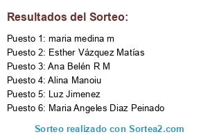Lista de participantes: Cristina martinez, VERONICA RODRIGUEZ, Titi Ver, Alina Manoiu, concepcion matias, cris gil, gloria iglesias, Teresa Prieto González, Zulema Pontes, angeles izquierdo fernandez, meritxell abad, Núria Garcia, Nerea Nuevo, elena cuesta gomez, CRISTINA VILLAR HOLGADO, maria medina m, Nita Del Pita, María José Moreno Mateo, veronica sumillera garcia, Mar jimenez, Paqui Risquez, lourdes dinares, Sonia Rabadán, Esther Vázquez Matías, Elena Mesa, yessica del amo sanchez, Marta Mgl, BELEN PALOMERO MIGUEL, Patricia Espada Sesar, ana martin perez, Ana Belén R M, kelika, Mar Rosa, Raquel Hs, Elena Sainz, noelia rodriguez olivares, Luz Jimenez, marian lopez ginel, Secreto de Venus, Ali Grande, Fran-Andrea Pérez-Peris, Rosa Maria Castillo Sanz, Juan Lanzas, Maria Angeles Diaz Peinado.