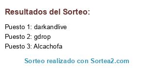 Lista de participantes: gdrop, gdrop, gdrop, gdrop, gdrop, gdrop, gdrop, gdrop, gdrop, Racangu, Racangu, Racangu, Racangu, Racangu, Racangu, Racangu, Racangu, darkandlive, darkandlive, darkandlive, darkandlive, darkandlive, darkandlive, suzuki, suzuki, suzuki, suzuki, suzuki, suzuki, kao82, kao82, kao82, kao82, kao82, Alcachofa, Alcachofa, Alcachofa, Alcachofa, Alcachofa, MisterDoctor, MisterDoctor, MisterDoctor, MisterDoctor, MisterDoctor, rommel, rommel, rommel, gilc, gilc, gilc, Danubis, Danubis, Danubis, hadahito, hadahito, hadahito, Huachimingo, Huachimingo, osoniel, osoniel, Kiru_D, Kiru_D, SoulB, SoulB, marioqm28, marioqm28, jorgenava, jorgenava, Mai-Lotto, Mai-Lotto, EZELEON, EZELEON.