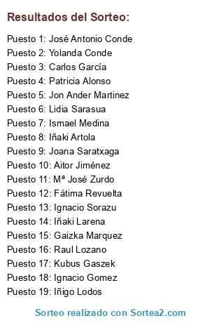 Lista de participantes: Aitor Jiménez, Carlos García, Fátima Revuelta, Gaizka Marquez, Ignacio Gomez, Ignacio Sorazu, Iñaki Artola, Iñaki Larena, Iñigo Lodos, Ismael Medina, Joana Saratxaga, Jon Ander Martinez, José Antonio Conde, Kubus Gaszek, Lidia Sarasua, Mª José Zurdo, Patricia Alonso, Raul Lozano, Yolanda Conde.
